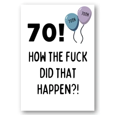 Funny/rude 70th how did that happen joke Happy Birthday card. Premium quality, printed on 350GSM linen card. Card size: 210mm x 148mm. Cards are left blank in the middle and come with an envelope. Cards are made from FSC certified card and are fully recyclable. Made by Second Ave Gift Company in our Essex based workshop. Search for Second Ave Gift Company to see our full range of gift ideas.