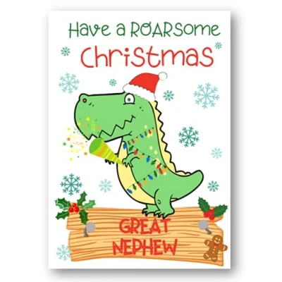 Second Ave Great Nephew Dinosaur Children's Kids Christmas Xmas Holiday Festive Greetings Card