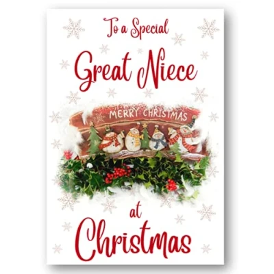 Second Ave Great Niece Christmas Red Holly Snowman Xmas Holiday Festive Greetings Card