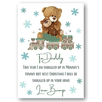 Merry Christmas Daddy love from the bump greetings keepsake card. Premium quality, printed on 350GSM linen card. Cards are left blank in the middle and come with an envelope. Cards are made from FSC certified card and are fully recyclable. Made by Second Ave Gift Company in our Essex based workshop. Search for Second Ave Gift Company to see our full range of gift ideas.