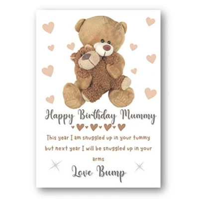 Birthday card for Mummy to be from the Bump. Premium quality, printed on 300GSM matte card. Card size: 210mm x 148mm. Cards are left blank in the middle and come with an envelope. Cards are made from FSC certified card and are fully recyclable. Made by Second Ave Gift Company in our Essex based workshop. Search for Second Ave Gift Company to see our full range of gift ideas.