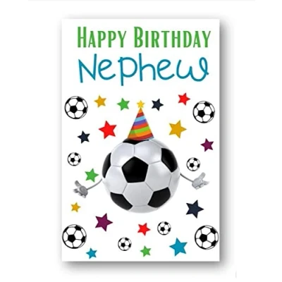Football Birthday card for Nephew. Premium quality, printed on 350GSM linen card. Card size: 210mm x 148mm. Cards are left blank in the middle and come with an envelope. Cards are made from FSC certified card and are fully recyclable. Made by Second Ave Gift Company in our Essex based workshop. Search for Second Ave Gift Company to see our full range of gift ideas.