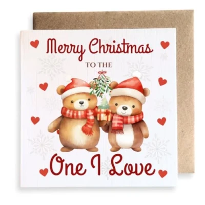 One I Love bears mistletoe Christmas square card. Premium quality, printed on 350GSM linen card. Card size approx : 148.5mm x 148.5mm. Cards are left blank in the middle and come with a brown envelope. Cards are fully recyclable. Search for Second Ave Gift Company to see our full range of gift ideas.