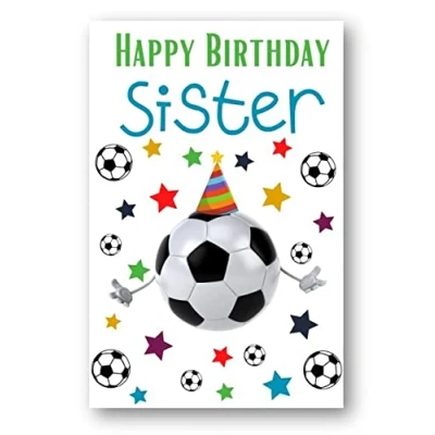 Football Birthday card for Sister. Premium quality, printed on 350GSM linen card. Card size: 210mm x 148mm. Cards are left blank in the middle and come with an envelope. Cards are made from FSC certified card and are fully recyclable. Made by Second Ave Gift Company in our Essex based workshop. Search for Second Ave Gift Company to see our full range of gift ideas.
