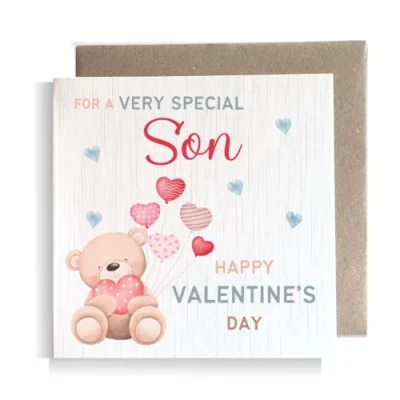 Son Valentine's Day card. Premium quality, printed on 350GSM linen card. Card size approx : 148.5mm x 148.5mm. Cards are left blank in the middle and come with a brown envelope. Cards are fully recyclable. Search for Second Ave Gift Company to see our full range of gift ideas.