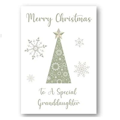 To A Special Granddaughter Christmas Card. Premium quality, printed on 300GSM matte card. Cards are left blank in the middle and come with an envelope. Cards are made from FSC certified card and are fully recyclable. Made by Second Ave Gift Company in our Essex based workshop. Search for Second Ave Gift Company to see our full range of gift ideas.