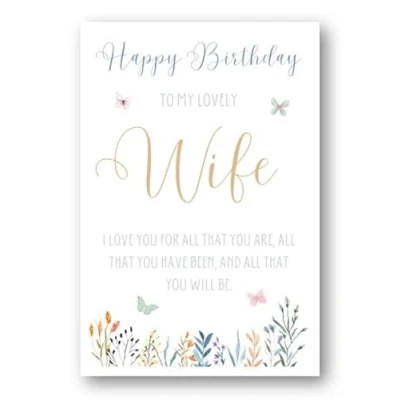 Second Ave To My Lovely Wife Flowers Butterflies Birthday Greetings Card