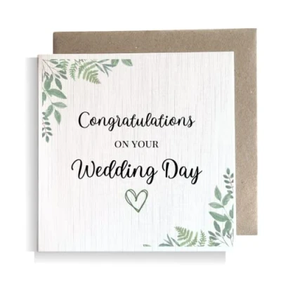 Eucalyptus botanical wedding day square card. Premium quality, printed on 350GSM linen card. Card size approx : 148.5mm x 148.5mm. Cards are left blank in the middle and come with a brown envelope. Cards are made from FSC certified card and are fully recyclable. Made by Second Ave Gift Company in our Essex based workshop. Search for Second Ave Gift Company to see our full range of gift ideas.