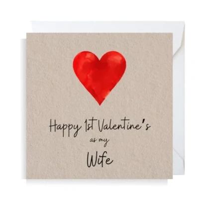 1st Valentine's Day as my wife design. Premium quality, printed on 300GSM matte card. Card size approx : 145mm x 145mm. Cards are left blank in the middle and come with an envelope. Cards are fully recyclable. Search for Second Ave Gift Company to see our full range of gift ideas.