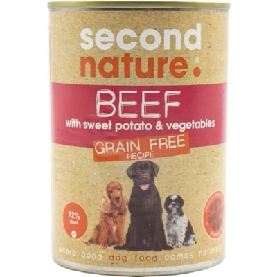 Second Nature Grain Free Wet Dog Food Tins High Protein Beef & Sweet Potato Natural, Pate Pet Multipack 395g (Pack of 12 Cans)