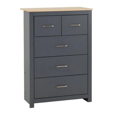 Seconique 3+2 Drawer Chest, Engineered Wood, Grey/Oak Effect, W 800mm x D 400mm H 1140mm
