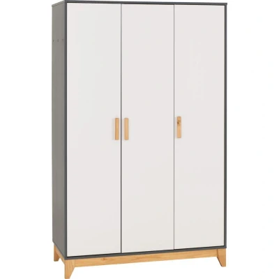 General description The Cleveland 3 Door Wardrobe combines functionality and style, featuring a modern white and grey metal effect finish. It is designed to provide ample storage space while enhancing the aesthetic of your room. Technical specifications Dimensions: L52 x W118 x H192 cm Weight: 68.32 kg Material: Composite board with 3D paint effect, plastic veneer, MDF back panel Hanging rail: Metal Handles: Pine Hinges: Metal Feet: Pine Plinths: Pine