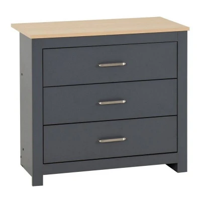 Seconique 3 Drawer Chest, Engineered Wood, Grey/Oak Effect, W 800mm x D 400mm H 715mm