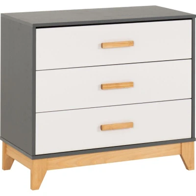 Seconique 3 Drawer Chest, Engineered Wood, White/Grey Metal Effect, W 800mm x D 400mm H 730mm