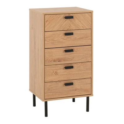 Seconique 5 Drawer Chest, Engineered Wood, Medium Oak Effect, W 485mm x D 400mm H 935mm