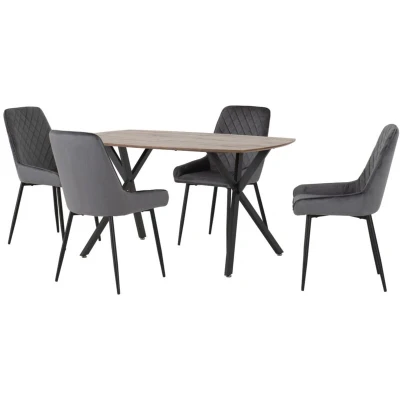 Seconique Athens Dining Table Set with 4 Avery Chairs in Medium Oak Effect/Grey Velvet