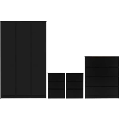 Seconique Malvern 3 Door Wardrobe Bedroom Set in Black 3 Door Wardrobe W 1150mm x D 505mm x H 1800mm 4 Drawer Chest W 800mm x D 400mm x H 1000mm 2 x 3 Drawer Bedsides W 400mm x D 400mm x H 600mm Other finishes also available This product will be shipped in several packages;They may be delivered at different times