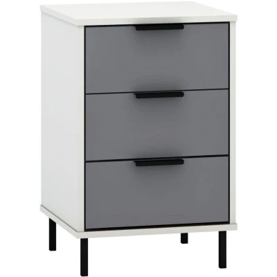 General description The Madrid 3 Drawer Bedside is a stylish and functional addition to any bedroom. With its modern grey and white gloss finish, it offers ample storage space while enhancing your decor. Technical specifications Dimensions: L38 x W40 x H62 cm Weight: 12 kg Frame material: Composite board Paint effect: Yes Veneer: Plastic Back panel: MDF Drawer base: MDF Handles: Metal Drawer runners: Metal Feet: Metal Anti-tip strap: Included
