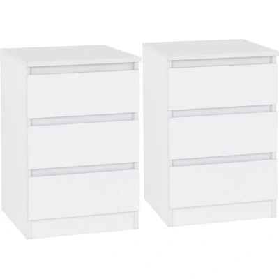 General description The Malvern 3 Drawer Bedside (PAIR) is a stylish and functional addition to any bedroom, offering ample storage space with its three drawers. Technical specifications Dimensions: L40 x W40 x H60 cm Weight: 13.45 kg Material: Composite board, paper veneer, plastic veneer, MDF back panel, MDF drawer base Drawer runners: Metal Feet: Plastic