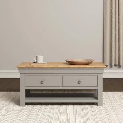 Seconique Bordeaux 2 Drawer Coffee Table in Pebble Grey/Oak