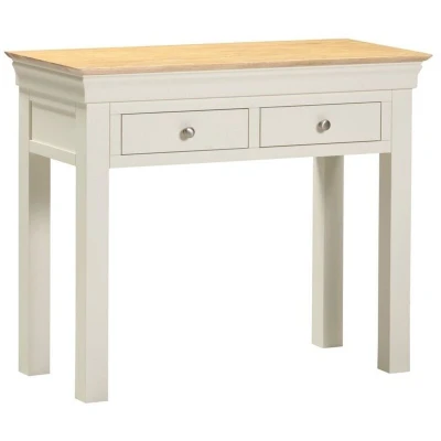 Introduce timeless elegance and practical storage to your home with this beautifully crafted console table, delivered pre-assembled for your convenience and available in a sophisticated Pebble Grey or a soft Ivory finish to suit any décor. Featuring a solid oak top that adds warmth and natural character, this versatile piece includes two spacious drawers for everyday essentials, each customizable with a choice of two handle finishes. Part of a coordinated furniture range, this console table pairs perfectly with matching sideboards, coffee tables, and bookcases to create a cohesive and stylish living space. Product Material: Hardwood/Oak/Painted Finish (Matt)/Plywood Drawer Base/Metal and Wooden Handles/Pine Drawer Runners/Plastic Feet Dimensions & Weight: Dimension: L43 x W98 x H81 cm Weight: 22 kg . Bordeaux Console Table - Ivory/Oak . Delivery is free to UK Mainland, excluding AB31 to AB38, AB40 to AB56, IV, KA27 & KA28, KW, PA20 to PA78, PH4 to PH50 and ZE in Scotland; BT for