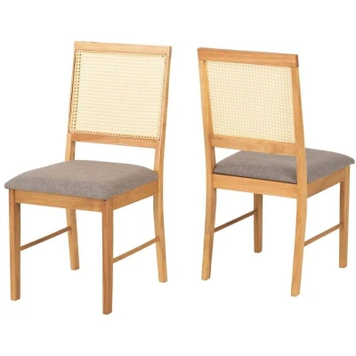 Add rustic charm and contemporary comfort to your dining space with the Ellis Dining Chair, available in a convenient box of two. Featuring a sleek oak-effect frame, grey fabric seat, and a rattan-style backrest, this chair blends traditional textures with modern design—perfect for kitchens, dining rooms, or even home offices. Its padded seat and supportive structure ensure comfort for everyday use, while the neutral tones suit a wide range of interiors. Product Material: Fabric/Foam/Rubber Wood/Non-Woven/Rattan Chair Back Dimensions & Weight: Dimensions: L52 x W45 x H92.5 cm Weight: 12 kg . Ellis Dining Chair (X2 Per Box) - Oak Effect/Grey Fabric . Delivery is free to UK Mainland, excluding AB31 to AB38, AB40 to AB56, IV, KA27 & KA28, KW, PA20 to PA78, PH4 to PH50 and ZE in Scotland; BT for Northern Ireland; all postcodes within the Republic of Ireland where a surcharge will apply, please check before ordering.. 3#5