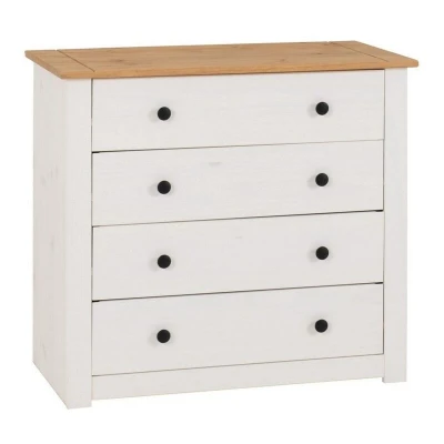 General description The Panama 4 Drawer Chest is a stylish and functional storage solution, perfect for organizing your belongings while adding a touch of elegance to your space. Technical specifications Dimensions: L40.5 x W80 x H73 cm Weight: 17.4 kg Material: Pine plywood back panel, plywood drawer base, metal handle, pine drawer runners