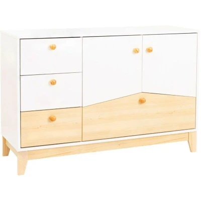 General description The Cody 2 Door 4 Drawer Storage Unit is a stylish and functional addition to any home. With its white and pine effect finish, it offers ample storage space while enhancing your interior decor. Technical specifications Dimensions: L40.5 x W118 x H80 cm Weight: 39.6 kg Frame material: Composite board with 3D paint effect Drawer base/back panel: MDF Drawer runners: Metal Hinges: Metal Handles: Pine Feet: Pine Back panel strip: Plastic Other information Anti-tip strap included for safety