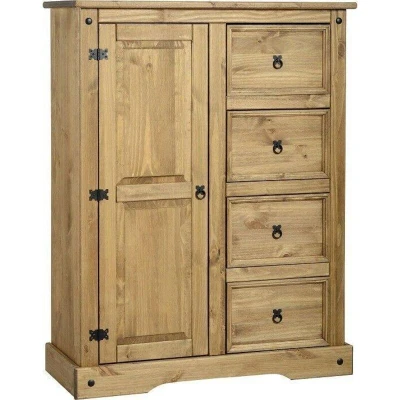 Seconique Corona 1 Door 4 Drawer Low Wardrobe in Distressed Waxed Pine