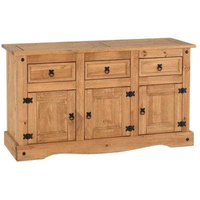 Seconique Corona 3 Door Drawer Sideboard in Distressed Waxed Pine