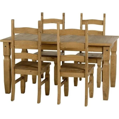 Seconique Corona 5' Dining Set with 4 Chairs in Distressed Waxed Pine