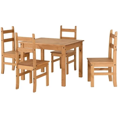 Seconique Corona Budget Dining Set with 4 Chairs in Distressed Waxed Pine