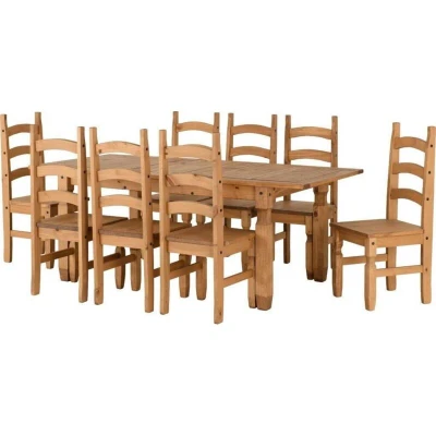Seconique Corona Extending Dining Set with 8 Chairs in Distressed Waxed Pine