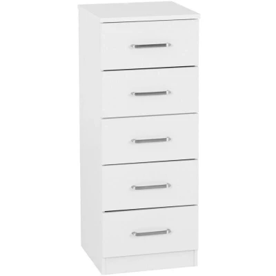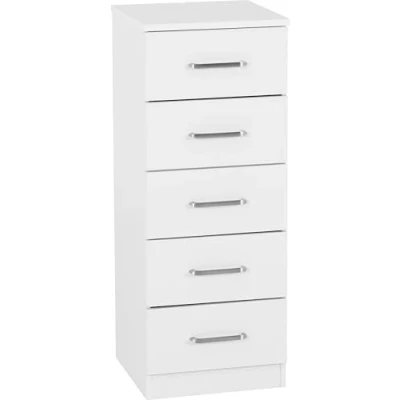Seconique Dakota 5 Drawer Narrow, Slim Chest in White