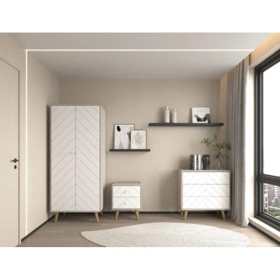 General description Dixie Trio is a stylish and functional storage solution designed to enhance your home decor. With its modern dusty grey and white finish, it seamlessly fits into various interior styles while providing ample storage space. Technical specifications Dimensions: L47 x W80 x H182.5 cm Weight: 86.7 kg Frame material: Composite board Veneer: 3D plastic and 3D paper Back panel: MDF Drawer base: MDF Drawer runners: Metal Hanging rail: Metal Hinges: Metal Handles and feet: Plastic