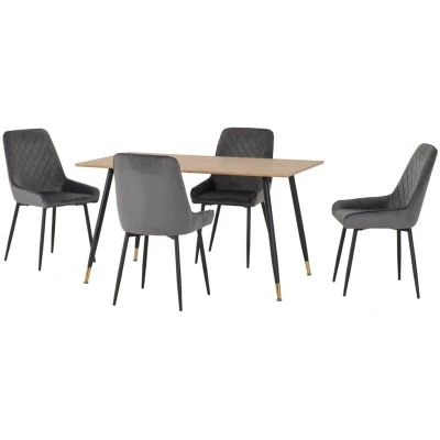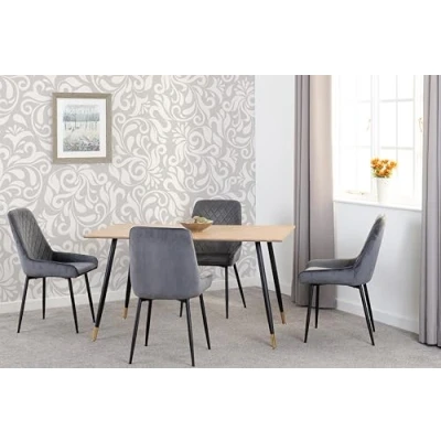 Seconique Hamilton Medium Dining Set with Avery Chairs in Oak Effect/Black/Grey Velvet
