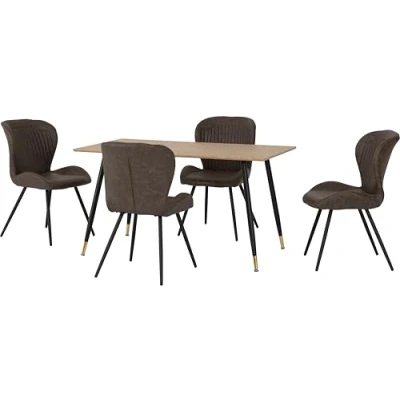 Seconique Hamilton Medium Dining Set with Quebec Chairs in Oak Effect/Black/Brown Faux Leather