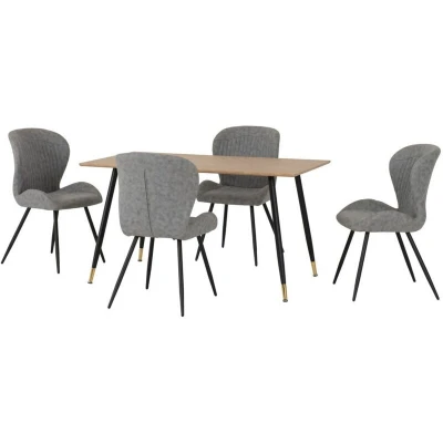 Seconique Hamilton Medium Dining Set with Quebec Chairs in Oak Effect/Black/Grey Faux Leather