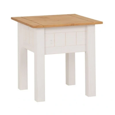 General description The Panama Lamp Table is a stylish and functional addition to any living space, featuring a beautiful combination of white and natural wax finishes. Its elegant design makes it perfect for holding lamps, books, or decorative items. Technical specifications Material: Pine Dimensions: L50.5 x W50.5 x H52.5 cm Weight: 6.3 kg