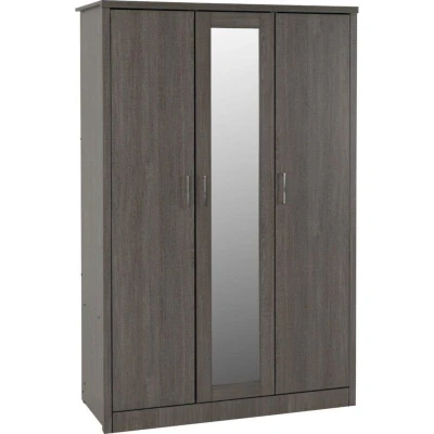 Seconique Lisbon 3 Door Wardrobe in Black Wood Grain