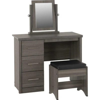 Seconique Lisbon 3Pc Dressing Table Set (With Mirror) in Black Wood Grain/Black Pu