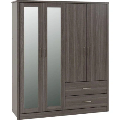 Seconique Lisbon 4 Door Wardrobe in Black Wood Grain
