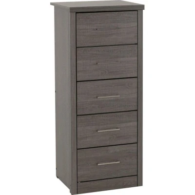 Seconique Lisbon 5 Drawer Narrow Chest in Black Wood Grain