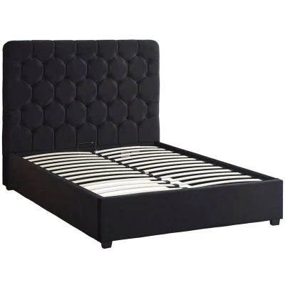 Seconique Madison 4'6" Double Ottoman Gas Lift Storage Bed in Black Velvet Fabric
