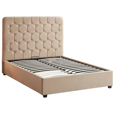 Seconique Madison 4'6" Double Ottoman Gas Lift Storage Bed in Fawn Velvet Fabric
