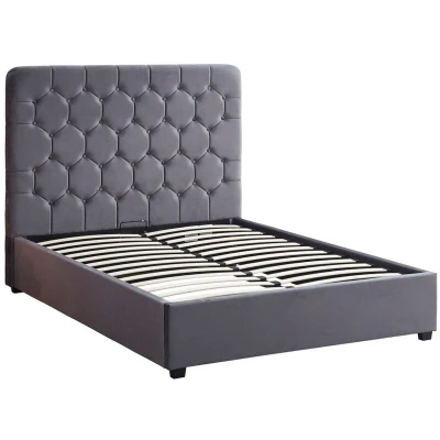 Seconique Madison 4'6" Double Ottoman Gas Lift Storage Bed in Grey Velvet Fabric
