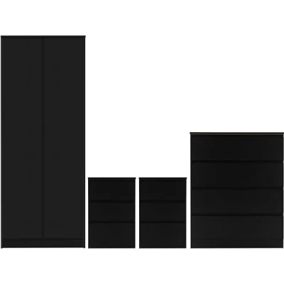 Seconique Malvern 2 Door Wardrobe Bedroom Set in Black