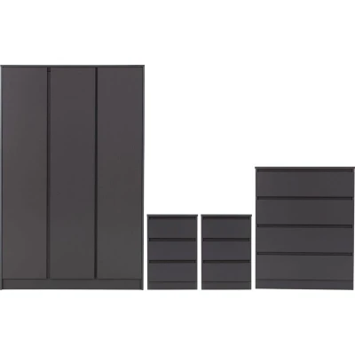Seconique Malvern 3 Door Wardrobe Bedroom Set in Grey