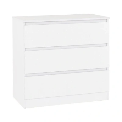 General description The Malvern 3 Drawer Chest is a stylish and functional storage solution, perfect for any room in your home. With its sleek white finish, it complements various interior designs while providing ample space for organizing your belongings. Technical specifications Dimensions: L40 x W80 x H77 cm Weight: 25.79 kg Material: Composite board, paper veneer, plastic veneer, MDF back panel, MDF drawer base Metal drawer runners Plastic feet