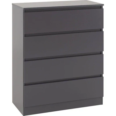 General description The Malvern 4 Drawer Chest is a stylish and functional storage solution, perfect for organizing your belongings while adding a touch of elegance to your space. Technical specifications Dimensions: L40 x W80 x H100 cm Weight: 33.17 kg Material: Composite board, paper veneer, plastic veneer, MDF back panel, MDF drawer base Drawer runners: Metal Feet: Plastic